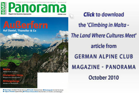 In October 2009, Andi Dick, editor of DAV Panorama, which is the bi-monthly magazine of the German Alpine Club (DAV), was brought to Malta through the efforts of the MTA’s Sports and EFL Segment executives.